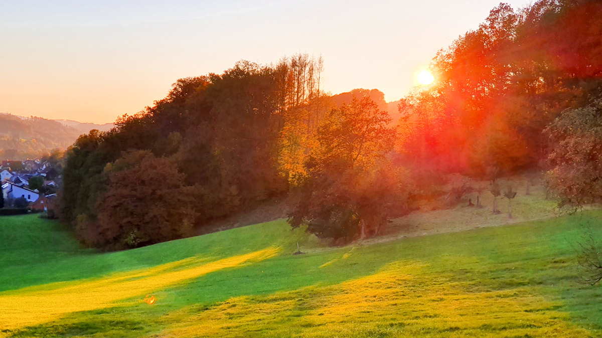 Herbstliche Bäume, Blätter, Blumen oder Gräser, wo die Sonne durchscheint. Also vielleicht leicht überbelichten, damit die Farben leuchten! Nicht direkt in die Sonne, sie soll hinter den Motiven versteckt sein oder höchstens durch ein kleines Loch oder am Rand etwas hervorlugen!